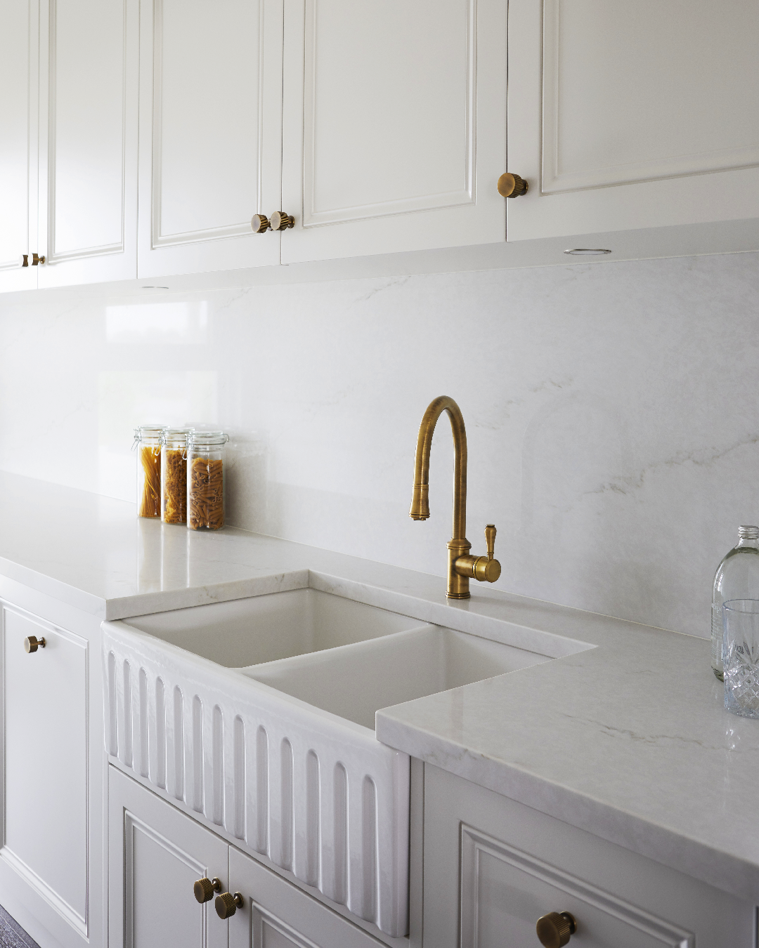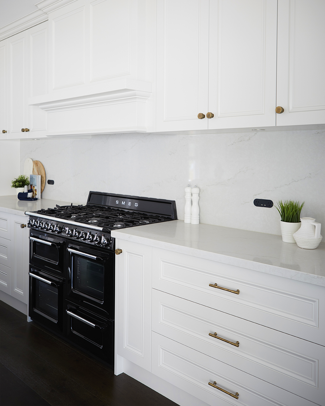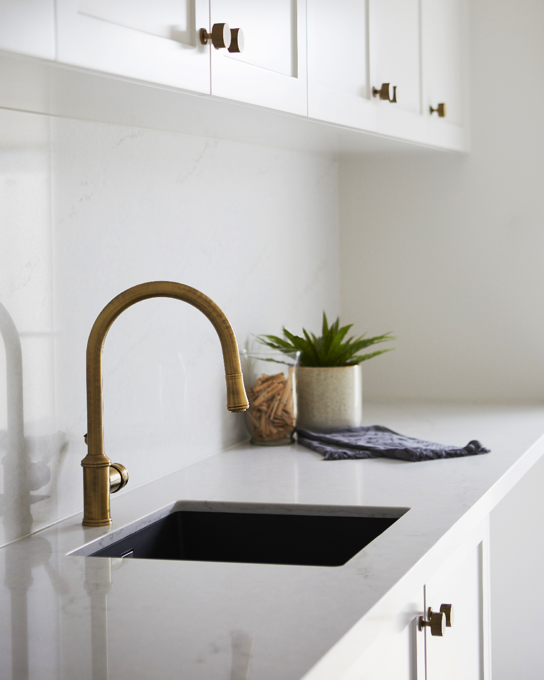The components of this home reach across decades and style movements to create an exciting, inviting and unique display of the classic contemporary theme that is not always easy to execute but so coveted today. From choices like filigree and bold wallpaper to the quieter moments of minimalist lighting and brushed bronze tapware - where even the heating source is a powerful style choice and a nod to a less modern time, our Freya Handles and Freya Knobs not only find their place but lend a hand to the other components in the home allowing the overall themes to coalesce into something cohesive, bridging the space between the styles and elements we love.