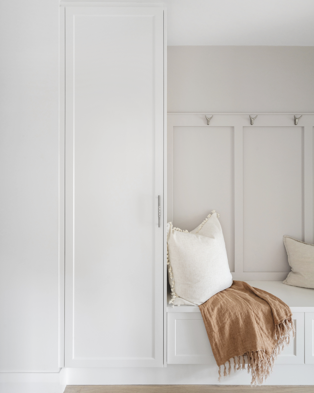 This new build, which could easily be described as a scandi-modern triumph, bursts with custom detail and presents us with a seamless merging of warmth and modernity. Throughout the home, classic elements like cornice moulding, wall trim and shaker cabinets provide a warm backdrop, giving decorative components a place to shine. White, oak and stone feed that nordic aesthetic, while vaulted ceilings, contemporary lighting and fixtures allow the home to dance on a line between hygge and high fashion.