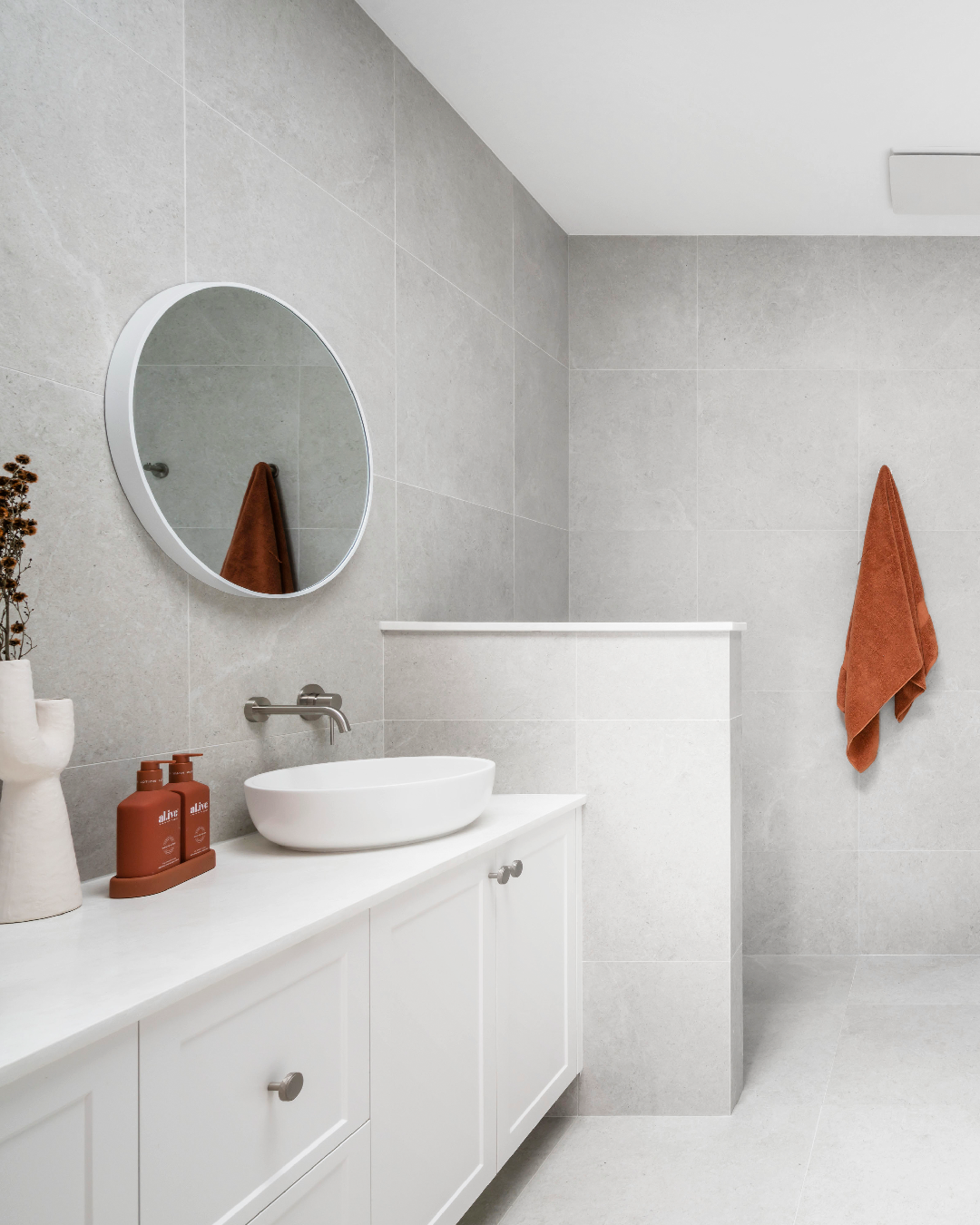 The open layout delivers excellent light and a sense of expansiveness central to many of our new-aged desires. Yet, it does so while preserving cosy corners to tuck away on a favourite lounge or soft rug. The oversized patio doors leading from the dining room collapse in on themselves, calling you to a lush backyard lined by a colorbond privacy fence finished in a soft black, punctuating the space and giving us a sense of being comfortably contained.