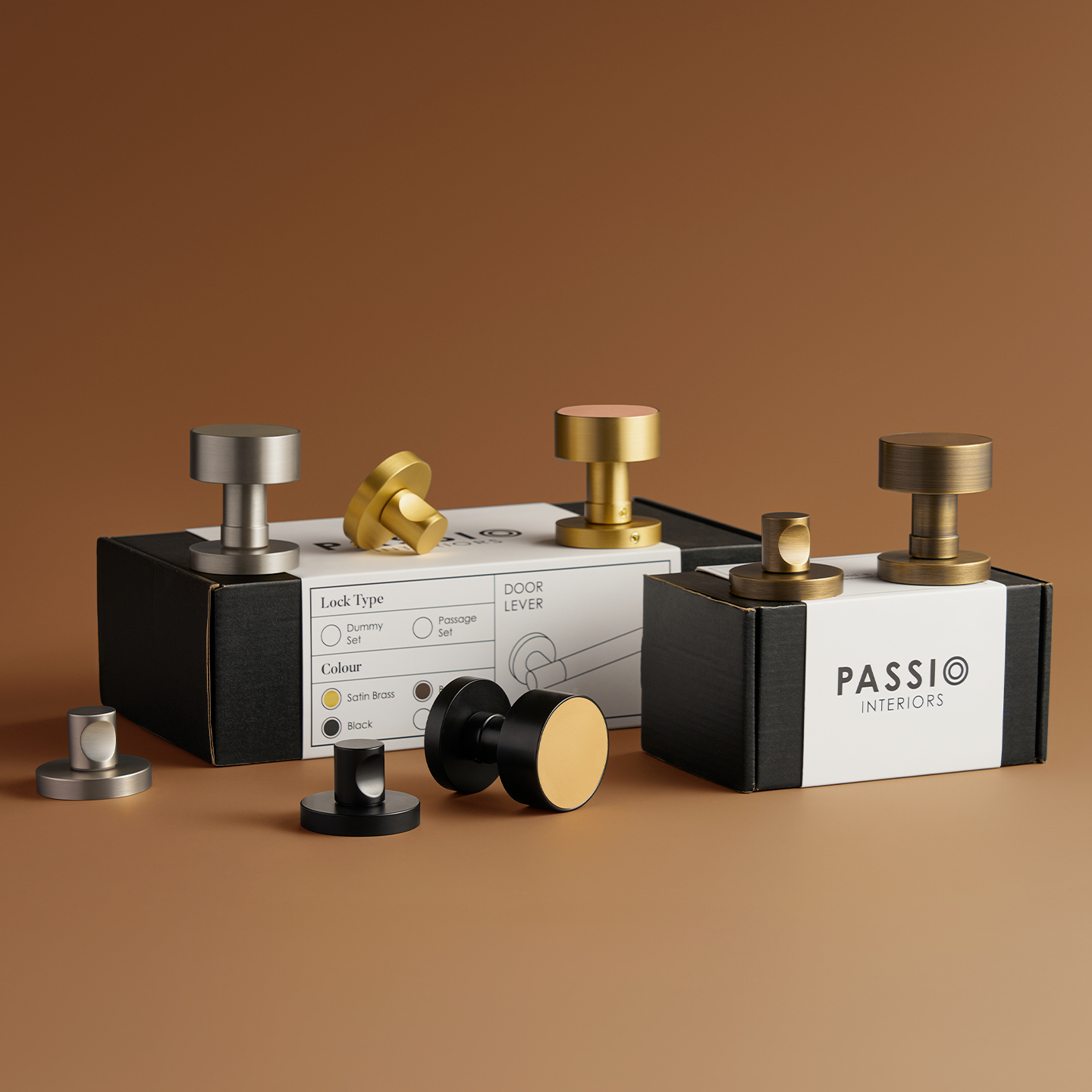 Our solid brass door handle collection includes both solid brass door knobs and solid brass door levers. Our solid brass door handles also come in a range of finishes such as gold, black, nickel, gunmetal, bronze, beige, grey, green, and orange, and door levers made of solid brass with full-grain leather accents.