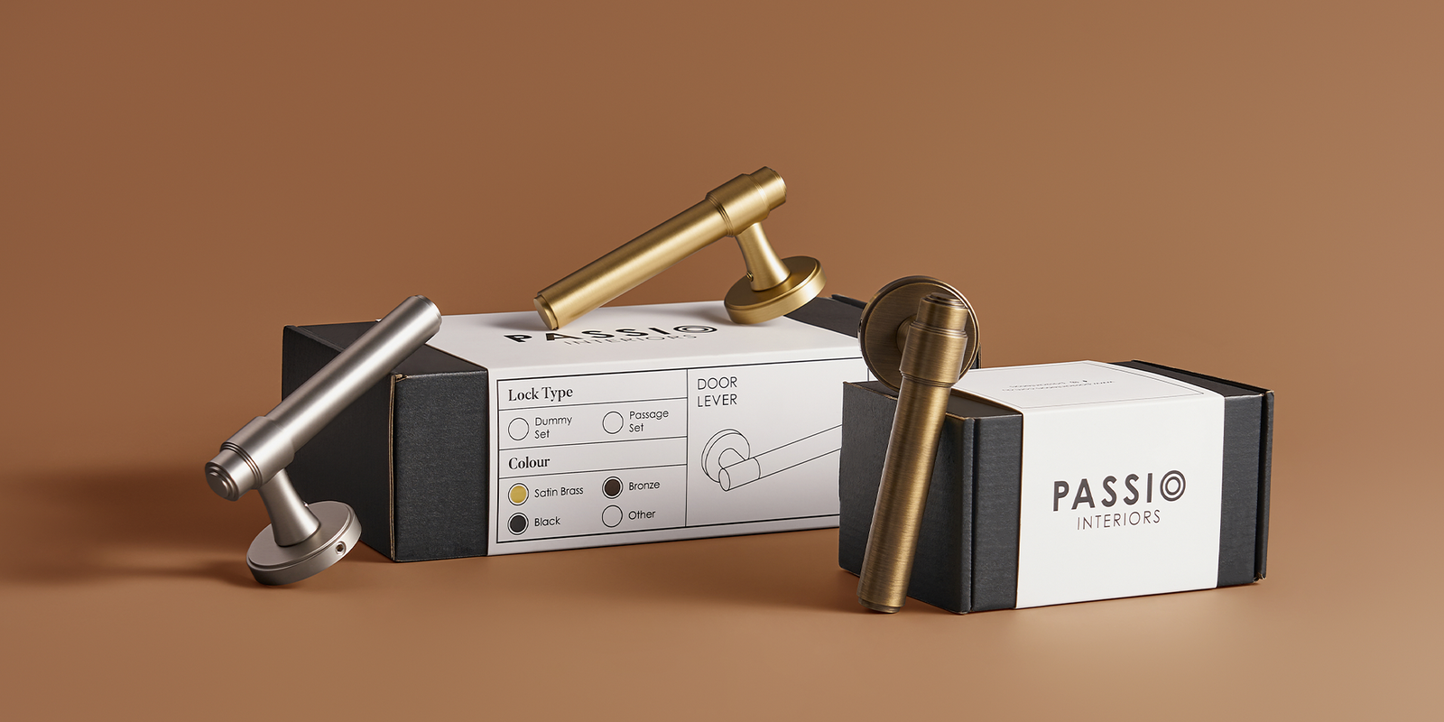 Passio watermarks are digital only. Our Door Levers are not engraved with the Passio logo.
