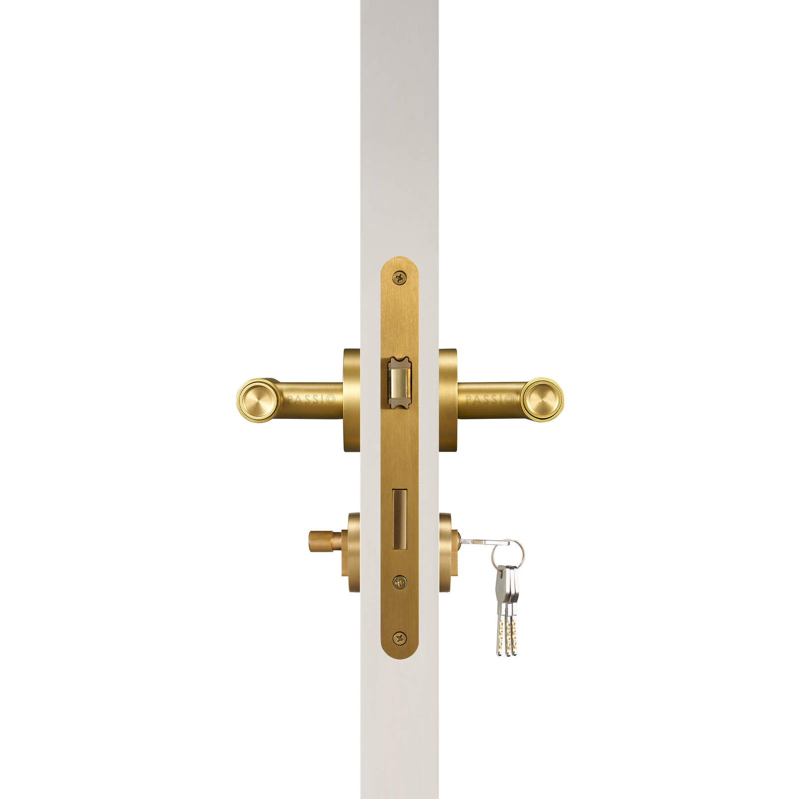 Includes a built-in button on the rose to lock the rotation of the levers for privacy use, with a hole for a toothpick to unlock the mechanism from the external side in emergencies. Generally used for internal passageways wherever privacy is required.*